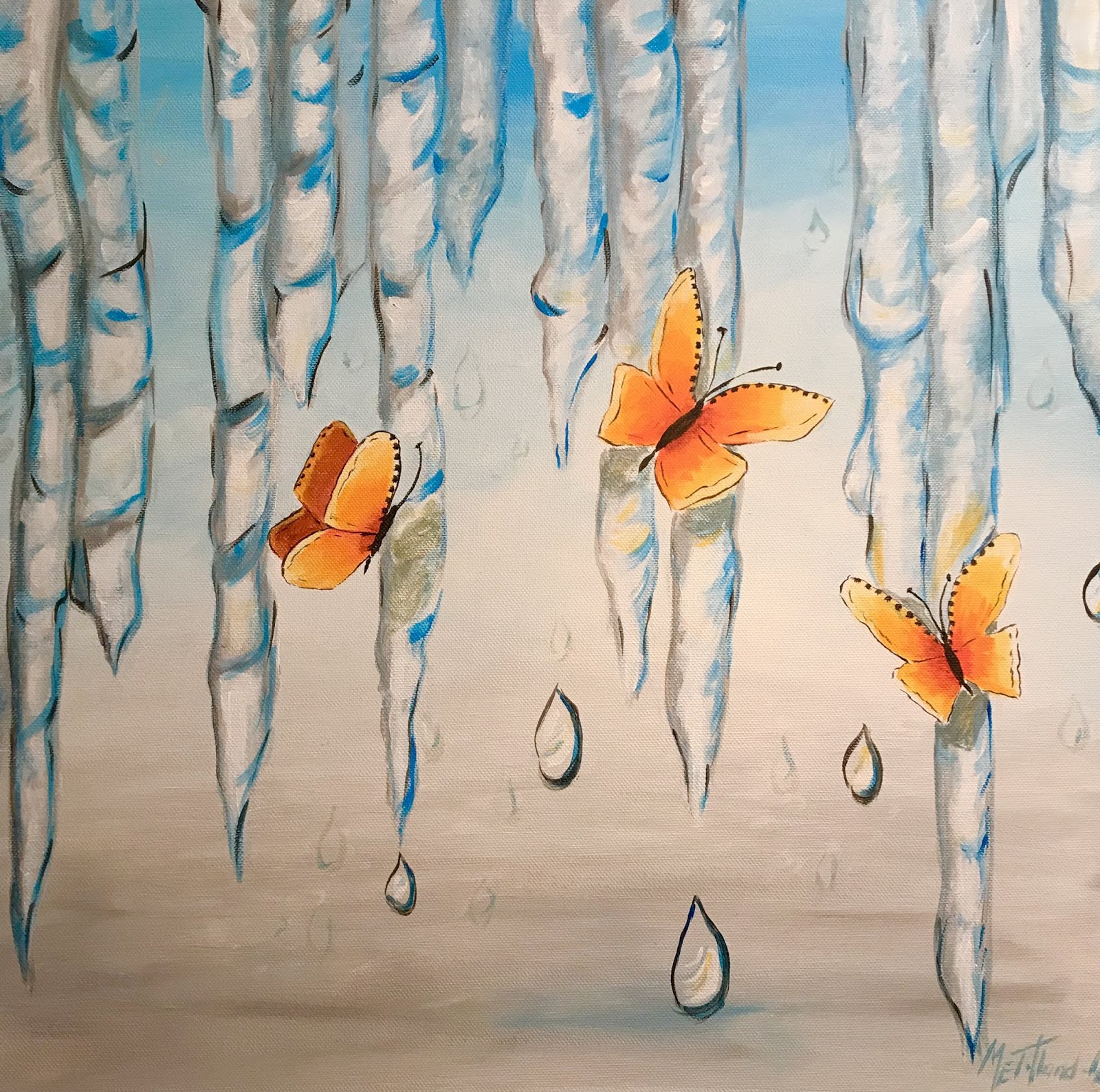 Eg kombinerer denne japanske kunsten med sommarfuglsymbolet i desse maleria. Sommarfuglen er eit kraftfullt symbolet for fornying og forvandling. I trua mi er det også symbol på oppstandelsen og det evige håpet, slik me finn det på gamle støypejernskrossar på gravplassane.